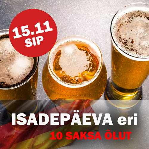 Isadepäevale järgneval reede õhtul teeme SIPis saksa stiilis õlleõhtuga kummarduse isadele, kelle eeskuju on saatnud enamuses meid läbi elu.Värskelt on lõppenud Saksamaal Münchenis maailma kuulsaim õllepidu Oktoberfest. Juhul kui sinu isa sinna ei jõudnud, too ta SAKSA õllesid maitsma SIP kaupluse koolitussaali Telliskivis.