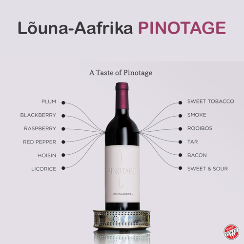 🍇 Pinotage on Lõuna-Aafrika rahvuslik viinamarjasort – aretatud 1925. aastal ristates Pinot Noir ja Cinsault. Veinid on sageli keskmise kuni täidlase kehandiga, rikkalikud ja puuviljased. Maitses tumedaid marju (must ploom, mustsõstar), punaseid puuvilju (kirss) ning vürtsikaid ja suitsuseid noote. Isegi banaani ja kohvi nüansse võib sageli leida veinist.